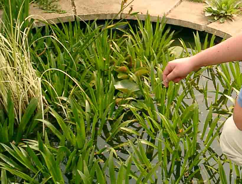 | Here you can see the amount of vegetation in the water. It had gone mad. Note that if you look carefully you can just see part of a water lilly trying to grow out of the masses of "water soliders". |
